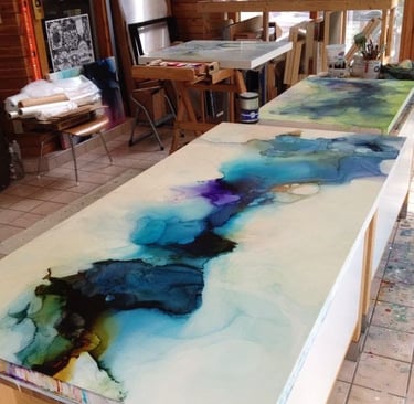 Diseño y creo cuadros abstractos y decorativos con técnicas contemporáneas y materiales innovadores.